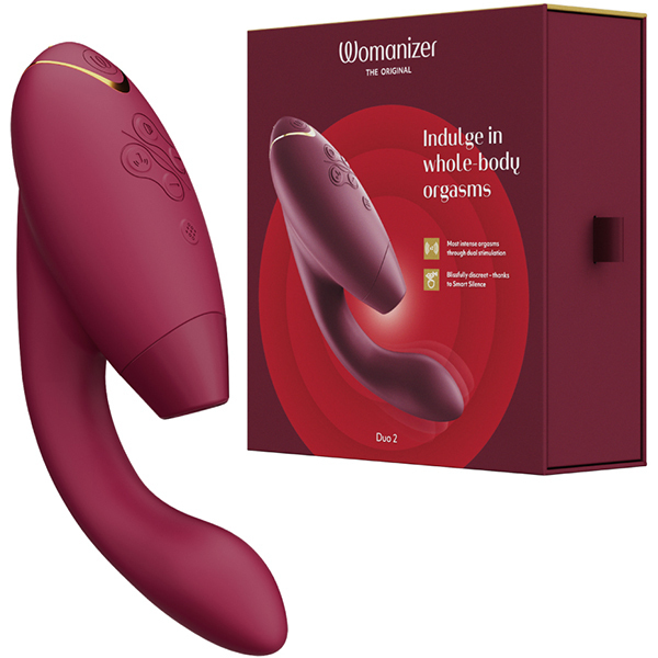 <吸引・震動/USB充電式>挿入と吸引が同時にできる大人気のウーマナイザーDUOがDUO2に進化!吸引振動の強弱段階は12段階から14段階へパワーアップ。
