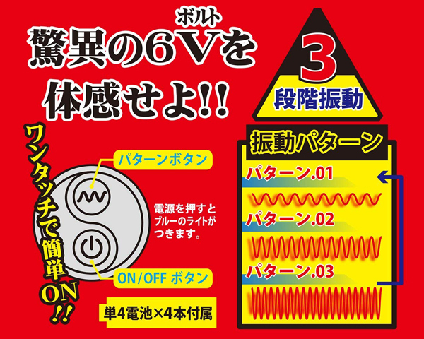 シンプル構造のシングルローターだから、どなた様でも手軽に6ボルトの振動をお楽しみいただけます♪