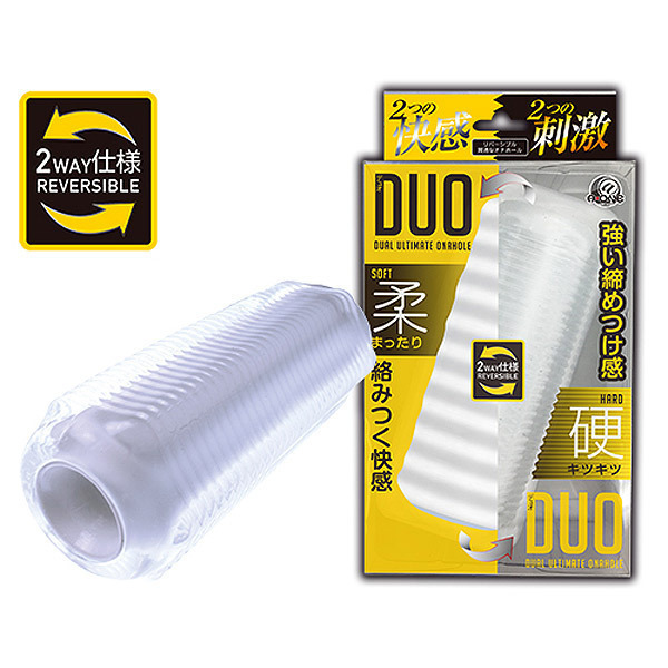 ソフトとハードの刺激をこれ一つで♪ひっくり返して使う両面仕様のリバーシブルオナホール「DUO(デュオ)」。